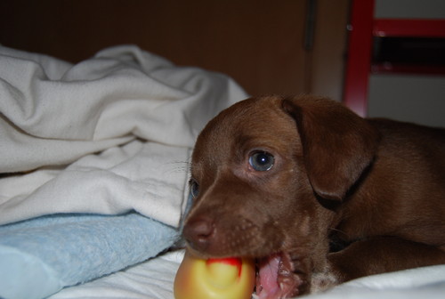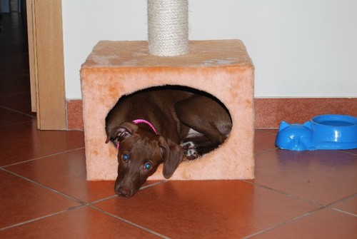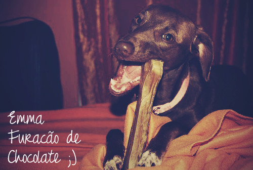 Mas assinalo então, que está cada vez mais endiabrada, o raio da cadela! Se eu achei que ali ao 1 ano e meio estava a acalmar, agora está cada vez pior!! Louca que só ela! A minha Emma Furacão de Chocolate aka cadela do demo! :D