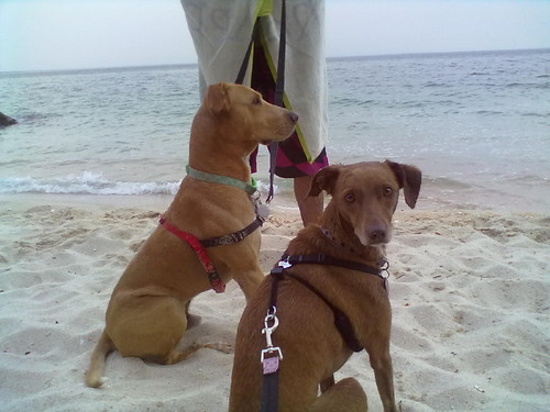 Os meus cães não têm espírito de labradores e água só pelos tornozelos (?) mas também tomaram o primeiro banho de mar do ano (muahahahah).