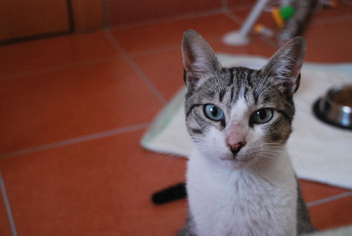 Agora chama-se Salazar, porque raspa tudo o que vê de comida, seja onde for, lol!!:D Até pão, segundo as palavras da "mami"! Enche-me o coração receber notícias dos afilhados:')